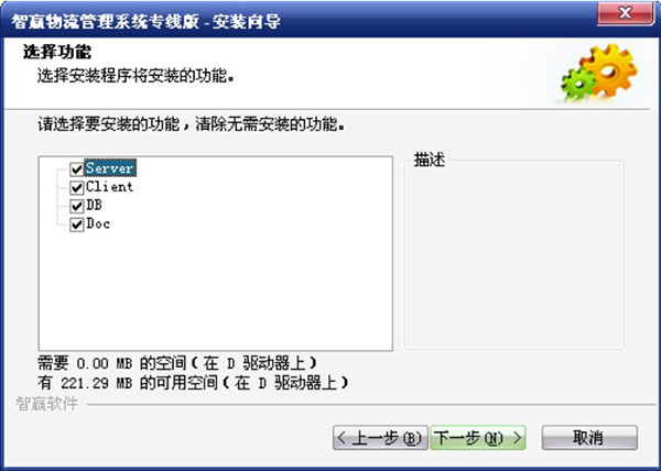 Server 智赢物流通专线版服务端,如安装在主机上,请勾选此项,安装服务端前请安装MSSQL数据库。