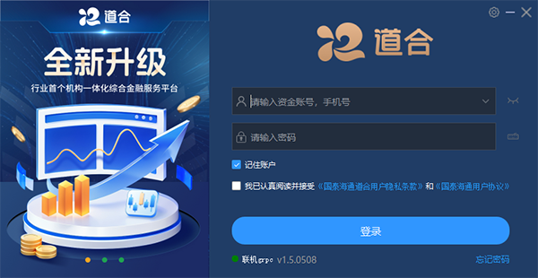 国泰海通道合电脑版是国泰海通证券股份有限公司官方推出的一款面向机构客户的一站式综合服务终端。平台拥抱机构客户群体多元化、综合化、个性化的新变化,以专业服务和金融科技为依托,重塑“以客户为中心”的服务理念,全新打造覆盖全业务链的产、投、研、销一体化的机构客户服务新生态。支持场外开放式基金、券商资管类产品、私募基金类产品、报价回购、收益凭证及场内基金认申赎回及即时交易,境内外权益收益互换线上交易,提供篮子交易、多产品交易、管理人指令和算法交易等多种交易执行功能。开放式、智能化的证券借贷服务,联合券源供给方、需求方,提供实时券源供给信息,向全球机构客户提供专业、综合、卓越的一体化综合金融服务。