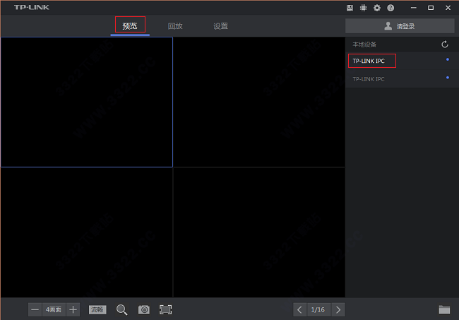 注意:TP-LINK安防系统关闭后,下次再次运行软件时,需要重新点击“+”添加才可以预览。在预览画面右下角还可以切换1/4/8/9画面。