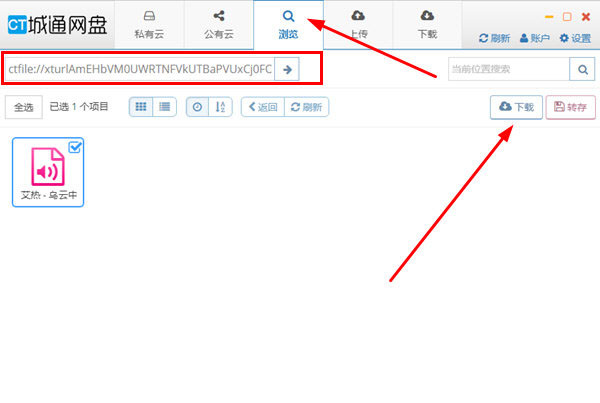 1、如果你想要在城通网盘中下载别人分享的文件,只需要复制链接,在“浏览”栏将链接粘贴到红框标注的地方,用户就可以在其中看到分享的文件,选择你想要下载的文件,点击右方的“下载”选项开始下载,如下图所示: