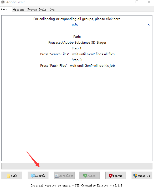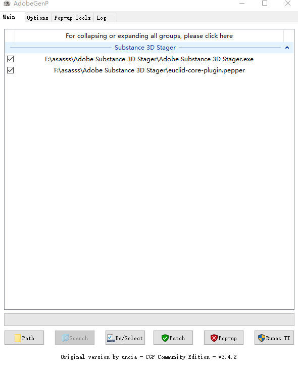 3、打开Adobe-GenP-3.4.2-CGP文件中的第一个文件夹以管理员的身份运行(需提前关闭杀毒软件),选择Path选择安装Substance 3D Stager程序;
