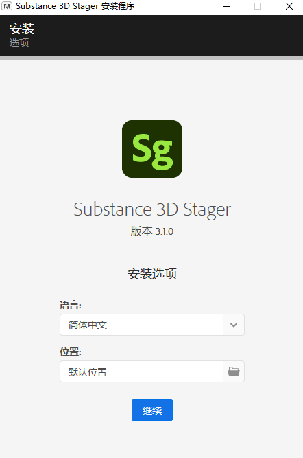 1、首先我们解压获得文件,安装Substance 3D Stager应用程序(安装路径不能带中文符号);