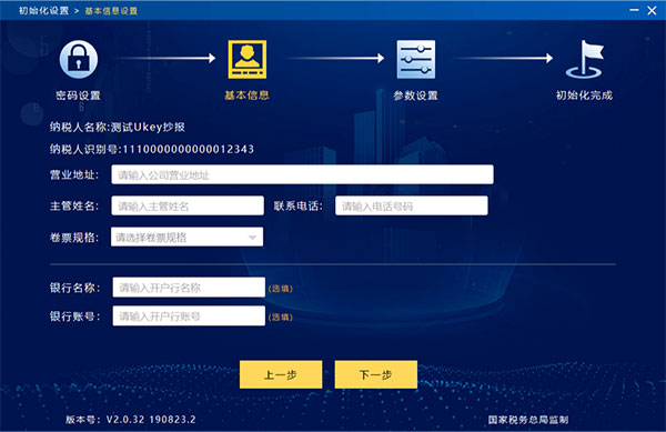 纳税人名称:系统自动获取税务UKey中记录的本企业名称,且不可更改。