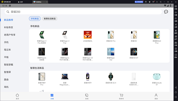 荣耀商城电脑版是需要借助模拟器在电脑上运行的线上数码商城平台。作为荣耀公司旗下的官方自营商城,平台内提供了荣耀手机、平板、笔记本电脑、穿戴、配件和家居等覆盖全场景的智能产品,让用户可以在平台内选购到各种荣耀产品,享受官方平台提供的正品保障和品质服务。