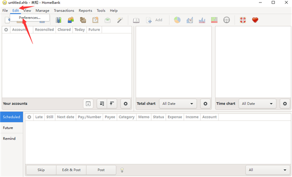 1、安装后启动软件,在菜单栏中找到“Edit – Preferences…”