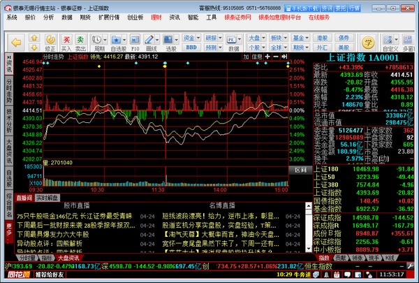 信息栏:用来显示滚动条、连接状态、预警提示灯、股灵通及系统时间等信息。
