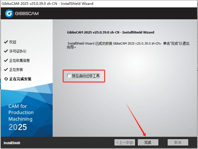 9、取消勾选【现在启动迁移工具】,点击【完成】。