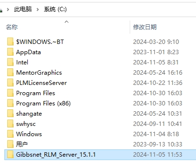 10、将Gibbsnet_RLM_Server_15.1.1文件夹复制到C盘当中。
