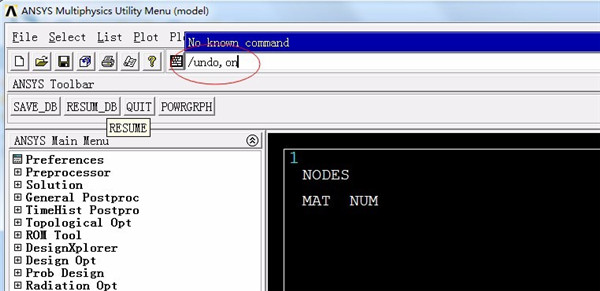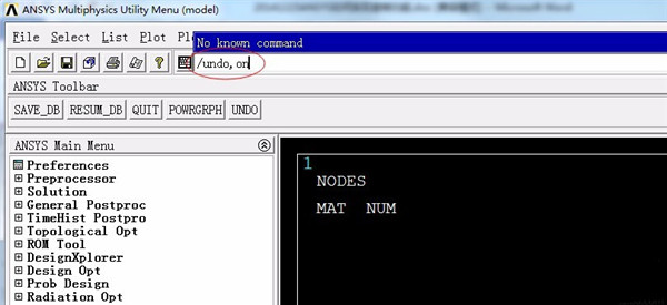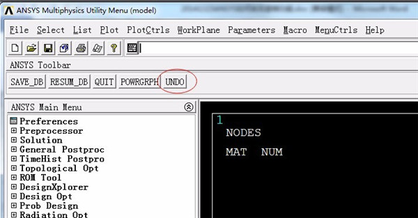 5、这时回到软件的主界面,我们会发现界面上方的ANSYS Toolbar下方出现了UNDO按钮,我们在进行误操作之后就可以点击该按钮进行撤销操作。