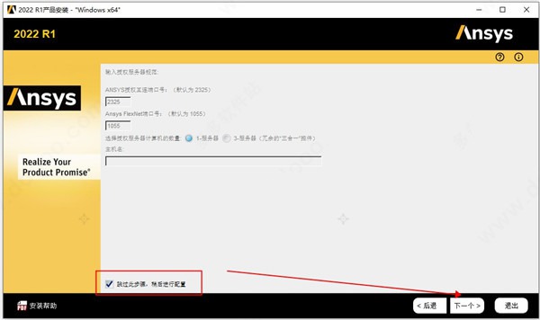 5、此时点击“跳过此步骤,稍后进行配置”不要安装ANSYS许可证管理器;
