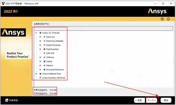 2、点击Disk1目录中的setup安装ANSYS Products 2022,点击安装ANSYS产品;