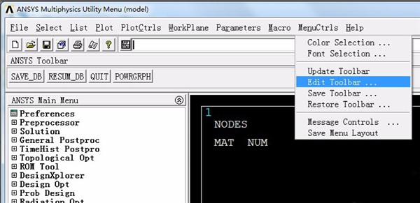 3、接着在界面右上方找到“MenuCtrls”并点击,会出现一个下拉框,我们在下拉框中选择“Edit Toolbar”。