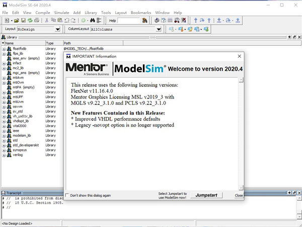 7、至此,软件成功激活,以上就是ModelSim SE 2020.4的详细安装教程,希望对用户有帮助。