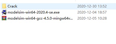 1、下载解压,得到ModelSim SE 2020.4 64位原程序和patch文件夹;