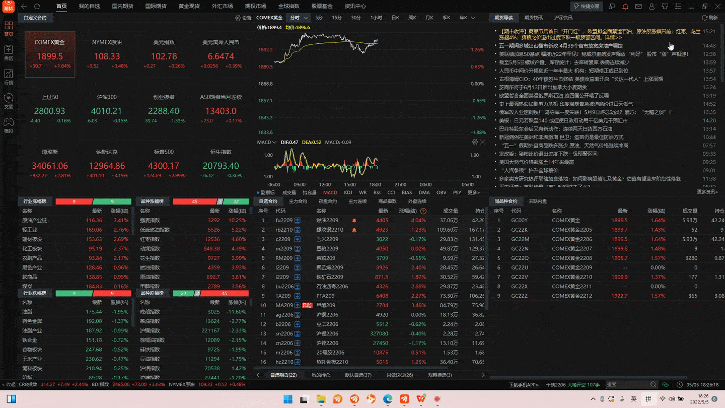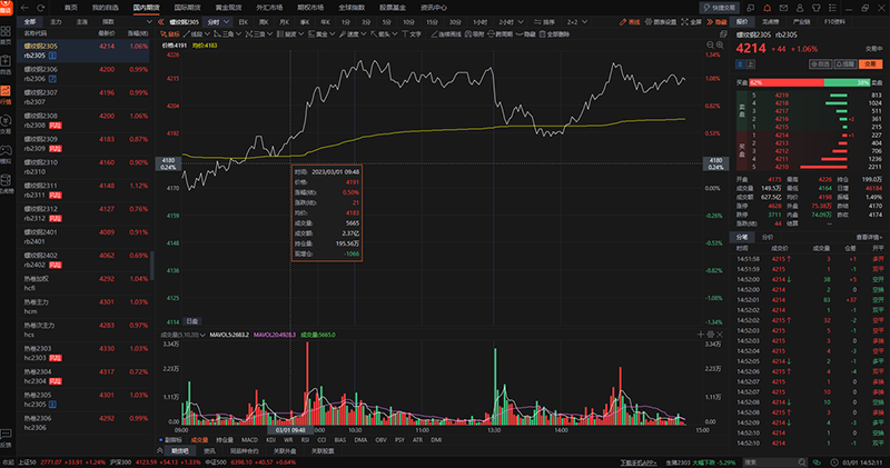 PC端行情图现已支持同时查看5个副图,您可在期货详情页、实盘交易界面、模拟交易界面的副图右上角单击“加号”按钮增加副图数量。