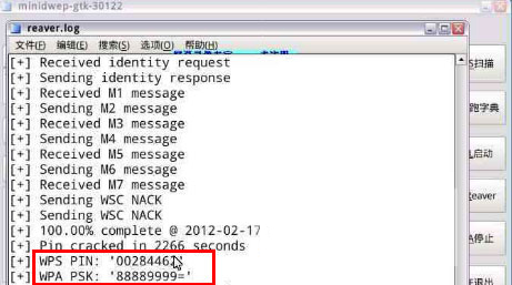 6、如图wps pin: 00284462就是他的pin,下面wpa pak:88889999就是密码,sicnal破解软件操作就是这样简单,希望对网友们有帮助