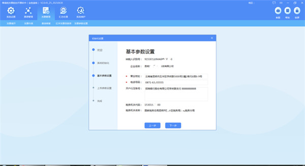 9、参照营业执照和基本存款账户信息表(开户许可证),分别录入地址、电话,银行名称及账号,点击下一步。
