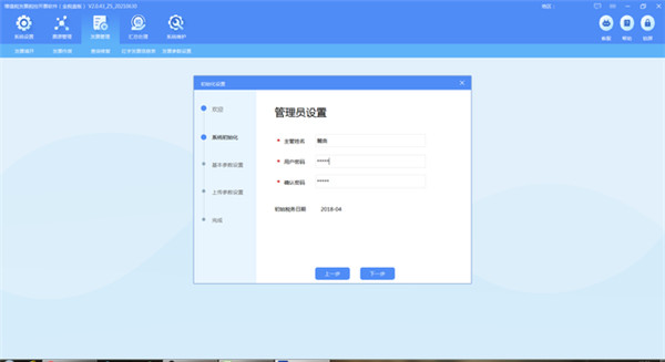 8、录入管理员名字或开票人名字,并设置密码,点击下一步。