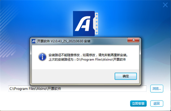 2、非首次安装可以选择直接点击快速安装,若用户需要选择路径,则会提示保护数据,不能随意更改安装路径。