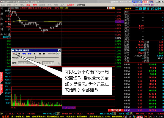 3、您还可以将此功能与“智能”菜单里面的“历史回忆”功能结合起来使用,通过选择日期来为您全面重现历史上任意一天的盘中走势。