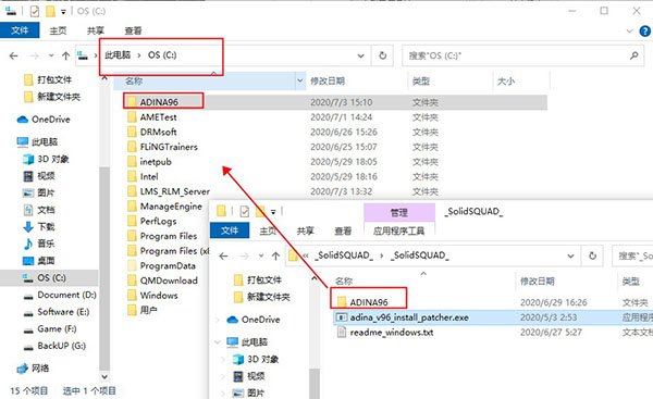 将“ Adina_v96_install_patcher.exe”复制到计算机并以管理员身份运行,等待CMD消息:“已成功修补,继续安装!