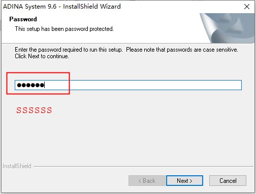 2、运行ADINA 9.6.1 Win64安装程序,当出现用于输入设置密码的窗口时。