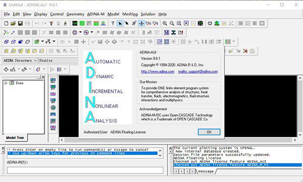 7、至此,ADINA System 9.6.1 64位成功激活,所有功能都可以免费使用。
