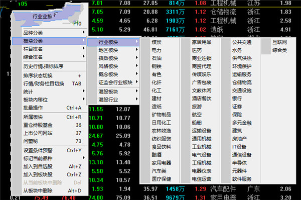 6、如果你需要在软件查看指定的行业就可以选择板块功能,可以在软件界面立即选择行情查看。