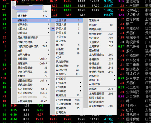 7、而软件的显示品种功能可以根据自己的需要查看不同的交易所数据,并且还能够切换对应的股票市场。