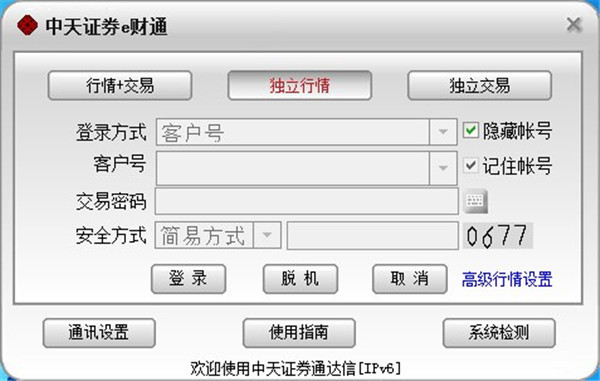 4、安装完成后点击启动文件并使用账号登录或者点击独立行情进入软件;