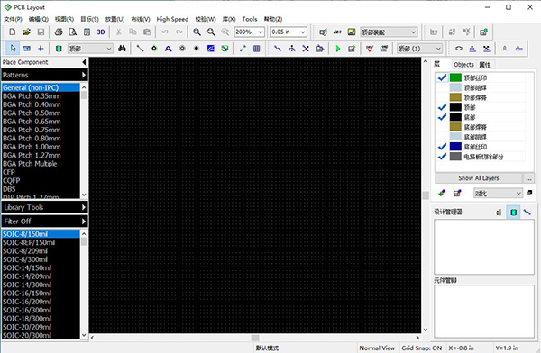 2、改进了PCB布局中对象的高亮和选择(在默认模式下高亮显示了轨迹和脚印下的所有其他对象)。