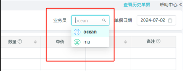 在选择单据的业务员时,可以选择用户或业务员。
