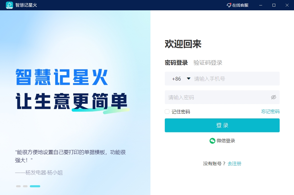 智慧记星火进销存电脑版还提供扫码快速入库、智能报价区分客户类型、开单收银打印一体化等高效功能,外加强大的异地协同功能确保多人在线操作——数据云端实时同步、电脑手机多端使用,助力用户随时随地掌控生意!