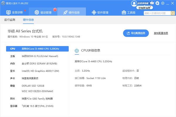 点击硬件信息,可以查看本机硬件配置