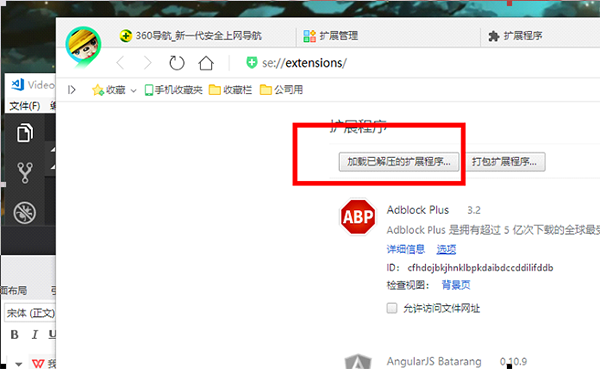 3、勾选开发者模式,点击加载已解压的扩展程序,将文件夹选择即可安装插件。