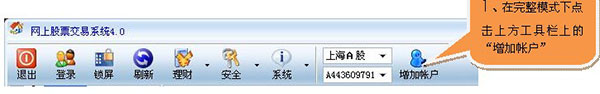 一、【多资金帐户的使用】 1、点击工具栏的“增加帐户”按钮。