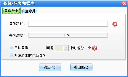 在系统设置模块中点击“系统维护”按钮,打开系统维护窗口再点击“备份/恢复数据库”按钮打开如图所示。在备份数据页中选择备份的路径,如果需要自动备份就选中“自动备份”再选择每隔几小时备份一次,系统将根据设置自动备份数据库。在恢复数据页中选择恢复文件,点击“确定”即可。