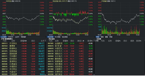 默认显示上证指数、深证成指、创业板指数。