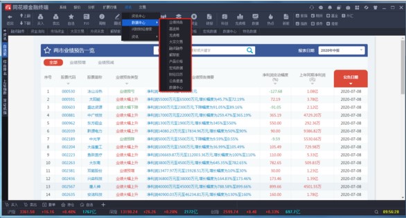 数据中心主要是方便您及时了解一些交易类的信息以及宏观经济等方面的内容,它包括了业绩预告、高送转、龙虎榜、大宗交易、融资融券、解禁股、产品价格、宏观数据、财经日历、公告速递、数据中心等信息。