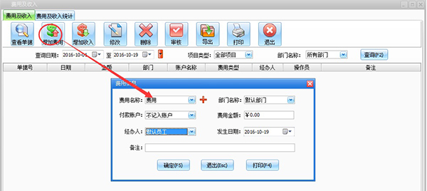 用户在统计管理页面,可以点击费用及收入,查看所有的账户支出和收入