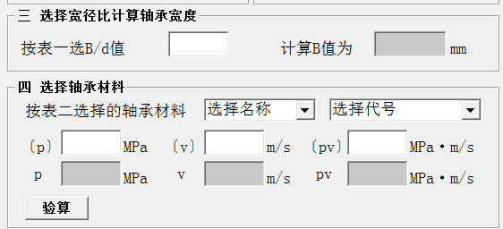 4、对宽径比计算轴承宽度进行设置,可以按表一选B/d、计算B值为mm