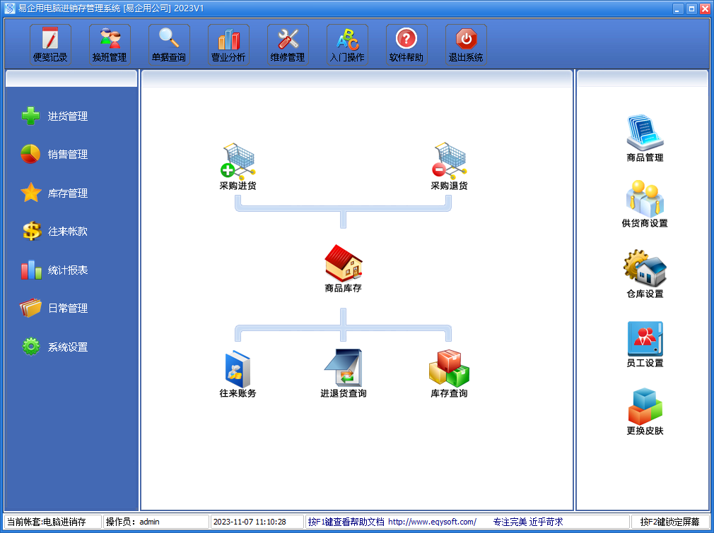 易企用电脑进销存系统官方版界面简洁优美,操作直观简单,无需专门培训即可使用。提供单机版、网络版、远程版以适应用户的不同需求。易企用电脑销售管理软件广泛适用于电脑公司,IT卖场,门店等用于电脑组装、电脑配件批发、电脑整机销售,电脑维修管理等场合,是您企业进行信息化管理的理想工具。
