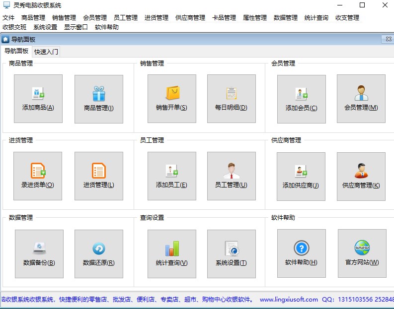 灵秀电脑收银系统官方版是一款方便易用,快捷便利的零售店、批发店、便利店、专卖店、超市、购物中心店面管理和收银软件。适用于现代社会上360行等各行各业的电脑收银软件。不管您是单店,还是连锁。不管您是本地,还是异地。不管您是局域网,还是广域网。不管您是有网络,还是无网络。一切皆可用。另外用灵秀电脑收银系统,安装在普通电脑(台式机或笔记本)上,即可轻松组建一套低成本,高效率、方便易用、快捷便利的店铺电脑收银系统。系统支持高达数百TB的数据,性能强大、配置简单、功能卓越、稳定好用,一切只为方便您的使用。