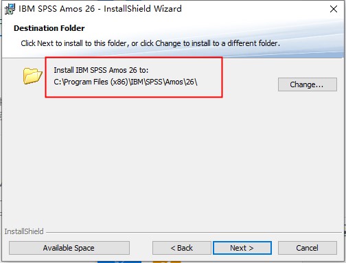 默认目录:C:\Program Files (x86)\IBM\SPSS\Amos\26