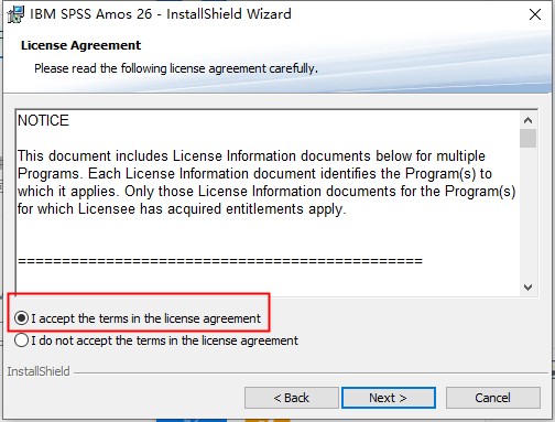 2、首先双击运行"SPSS_Amos_26_win32.exe"程序,勾选“I accept…“,接受软件安装协议;