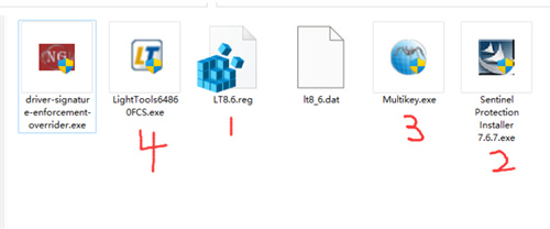 即按照图里的1234的顺序先安装完注册表,驱动,和lighttools的程序 部分电脑在win10系统安装这些程序后打开lighttools8.6可能会出现这些异常情况: