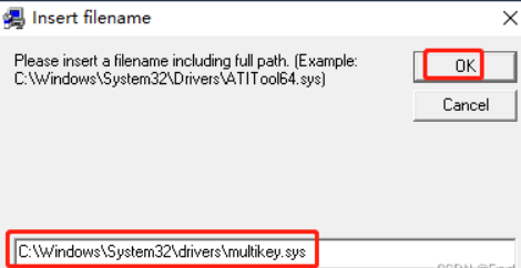 再输入C:\Windows\System32\drivers\multikey.sys,点ok