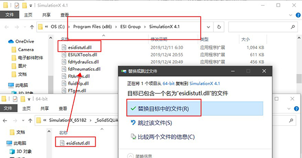 10、先不要运行软件,根据系统位数选择对应的esidistutl.dll补丁及许可证文件pam_lmd_SSQ.dat,复制到软件安装目录下