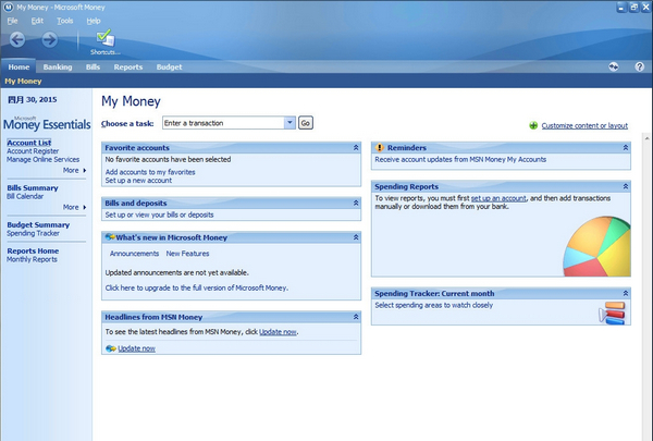 Microsoft Money是微软Microsoft官方出品的一款方便、好用,功能强大的财务分析/理财软件。Microsoft Money可以让你非常有效掌握信贷和债务,保证你的财务相关事物简单、清晰。Microsoft Money可以很快的处理的内容很广泛,包括从支票簿余额到提高你的信用额度,它帮你“得到”--“保持”--“整理”。Microsoft Money软件会自动将你的所有账户合并一处,并提供了很多实用工具,为你节省时间,提高效率,让你清楚知道和管理你的税务,减少债务。Microsoft Money可以帮助你管理你的支票簿、帐单、银行存款、建立预算、减少负债。Microsoft Money允许你观看你的财务资料,并进入交易的网站,并且包含新的自订化的公事包管理,并能存取网路上的投资研究结果,帮助你找到最佳的投资方案。Microsoft Money超强的管理性能赢得了众多用户的喜爱,同时也是一款强大实用的软件,有需要的朋友可以来3322软件站下载看看哦。