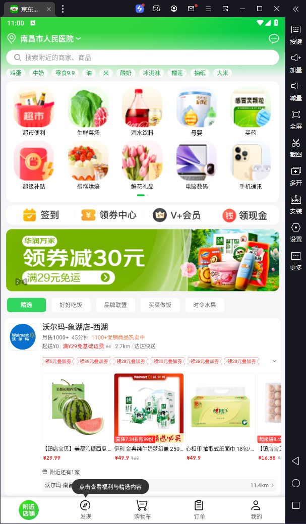 京东到家电脑版是需要使用模拟器在电脑上运行的线上购物平台,覆盖了全国1400个县区市,提供超市便利、生鲜果蔬、医药健康、3C家电、鲜花绿植、蛋糕美食、服饰运动、家居时尚、个护美妆等多种品类商品,满足用户多样化购物需求。